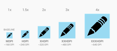 | XHDPI | 96 × 96 px | 8 px | 80 × 80 px | 4 px | 76 × 76 px | 4 px | 72 × 72 px |